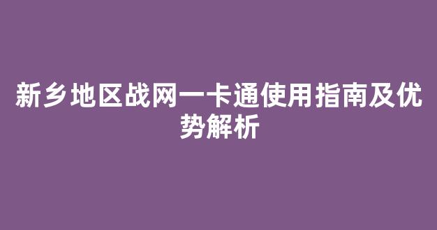 新乡地区战网一卡通使用指南及优势解析