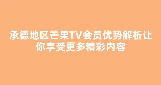 承德地区芒果TV会员优势解析让你享受更多精彩内容