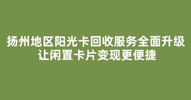 阳光卡回收服务在扬州地区的全面升级,让闲置卡片变现变得更加简便。随着人们日常生活中使用各种卡片越来越多,许多卡片却因各种原因成为了闲置资源。如何将这些卡片有效变现,成为了很多人关注的问题。为此,阳光卡回收服务进行全面升级,不仅提升了回收效率,也为用户提供了更加便捷的操作方式,让更多人能够将闲置卡片轻松转变为现金。