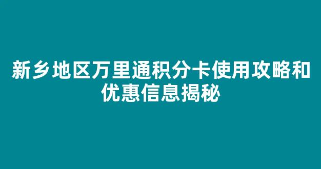 新乡地区万里通积分卡使用攻略和优惠信息揭秘
