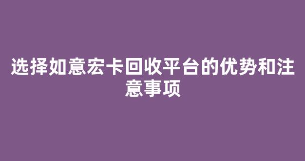 选择如意宏卡回收平台的优势和注意事项