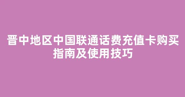 晋中地区中国联通话费充值卡购买指南及使用技巧