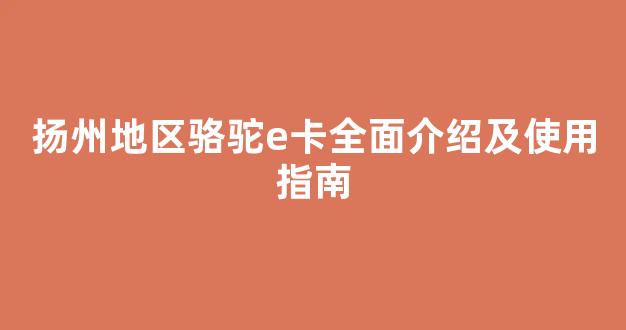 骆驼e卡是扬州地区推出的一种便捷的电子支付卡,方便市民在日常生活中进行各种消费。通过这张卡,用户不仅可以享受各类支付服务,还能享受一定的优惠和积分奖励。本文将全面介绍骆驼e卡的功能、使用方法以及如何回收等内容,帮助扬州地区的居民更好地了解这张卡片的使用价值。