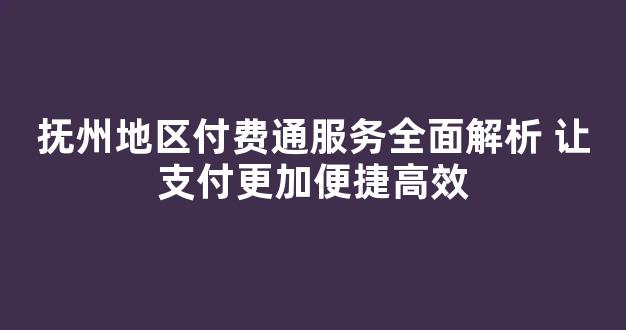 抚州地区付费通服务全面解析 让支付更加便捷高效