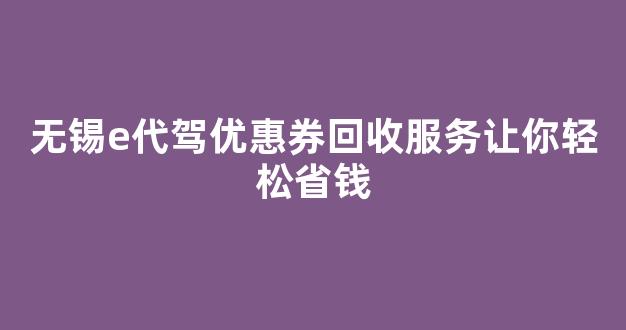 在日常生活中,代驾服务已经成为许多人的必需品,特别是在出行不便或者需要驾车应酬的情况下。而为了降低代驾费用,很多人选择使用代驾优惠券来享受折扣。无锡的e代驾优惠券回收服务,可以帮助用户轻松回收自己不再需要的优惠券,换取现金或者其他形式的奖励。这种回收服务不仅能帮助用户节省金钱,还能提高代驾券的使用价值。本文将详细介绍无锡e代驾优惠券回收服务的优势以及如何使用这一服务轻松省钱。