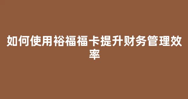 如何使用裕福福卡提升财务管理效率