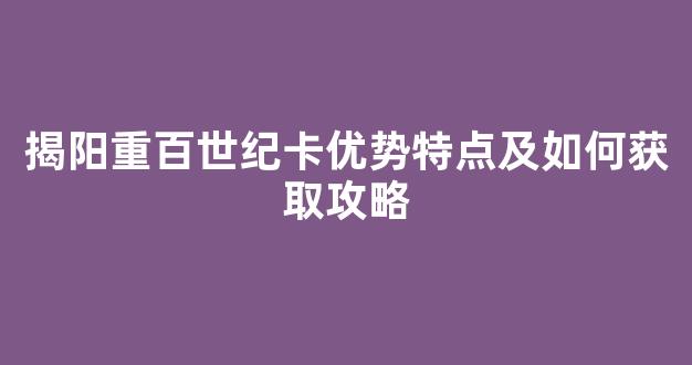 揭阳重百世纪卡是一款非常受欢迎的消费卡,它的优势不仅体现在多个方面的实用性上,而且还在获取的方式上提供了便利和灵活性。很多人通过这张卡可以享受到不同种类的购物优惠、积分兑换等福利。那么,揭阳重百世纪卡的优势是什么?又该如何获得它呢?本文将全面介绍揭阳重百世纪卡的各项特点,以及如何获取这张卡的详细攻略。