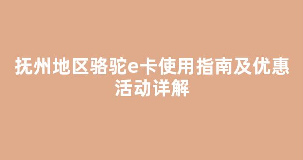 骆驼e卡是一个非常受欢迎的支付工具,它为用户提供了方便快捷的支付服务。特别是在抚州地区,骆驼e卡的使用范围逐渐扩大,涵盖了购物、餐饮、交通等多个领域。除了日常使用外,骆驼e卡还推出了一些优惠活动,使得用户能够享受更多的福利和折扣。本篇文章将详细介绍骆驼e卡在抚州地区的使用指南和各种优惠活动,帮助用户更好地理解如何使用这张卡,享受更多的实惠。