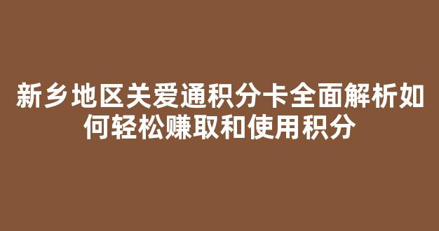 新乡地区关爱通积分卡全面解析如何轻松赚取和使用积分