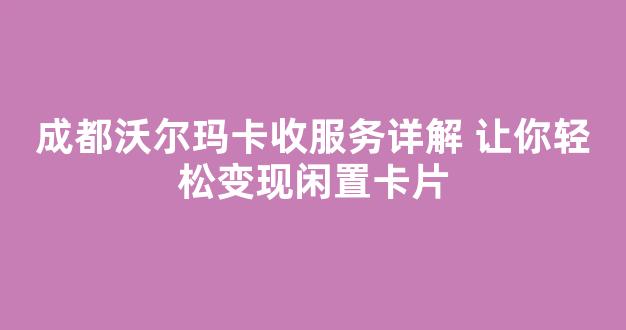 随着生活水平的提升,许多人手中有了越来越多的购物卡和储值卡。对于这些闲置卡片,很多人可能感到无所适从,不知道该怎么处理。成都沃尔玛卡作为一种常见的储值卡,很多人可能在购物时获得,但由于使用不频繁,这些卡片可能就成了“闲置卡”。那么,如何变现这些闲置的沃尔玛卡呢?本文将详细介绍成都沃尔玛卡回收服务,帮助你轻松变现手中的闲置卡片。