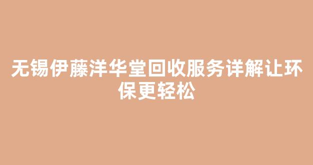 无锡伊藤洋华堂回收服务详解让环保更轻松