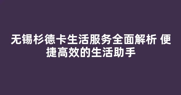 无锡杉德卡生活服务全面解析 便捷高效的生活助手