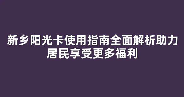 新乡阳光卡使用指南全面解析助力居民享受更多福利