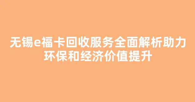 无锡e福卡回收服务全面解析助力环保和经济价值提升