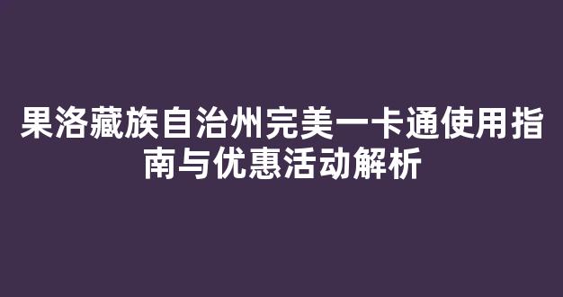 果洛藏族自治州完美一卡通使用指南与优惠活动解析