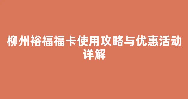 柳州裕福福卡使用攻略与优惠活动详解