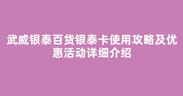 武威银泰百货银泰卡使用攻略及优惠活动详细介绍