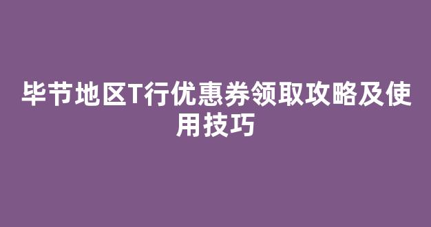 在如今的电商时代,优惠券成为了消费者节省开支的重要方式之一。特别是对于毕节地区的用户来说,T行平台的优惠券为他们提供了极大的便利。本文将详细介绍毕节地区T行优惠券的领取方法、使用技巧以及如何最大化优惠券的价值。无论你是第一次接触T行优惠券,还是已经是老用户,本文都将为你提供一些有用的建议和实用的技巧,帮助你更好地享受购物优惠。