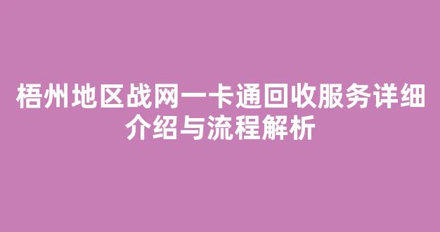 梧州梧地区州战地区网战一卡网通一卡回通收回收服务服务详细介绍详细与介绍与流程解析流程解析