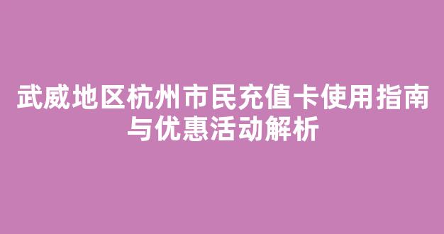 在武威地区,杭州市民充值卡的使用和优惠活动是许多人关注的热点话题。对于杭州市民来说,充值卡不仅能为日常购物提供便利,还可以享受各种优惠和奖励。本文将为大家详细介绍杭州市民充值卡的使用指南以及一些与充值卡相关的优惠活动,帮助大家更好地理解和利用这些资源。