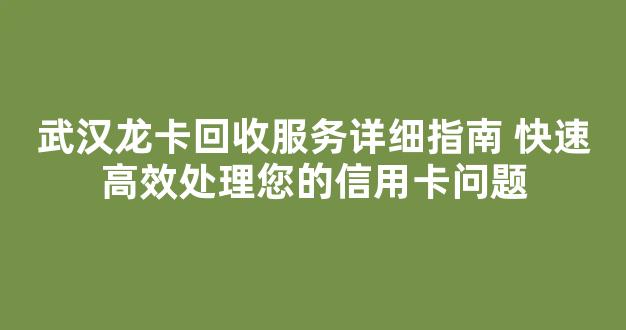 武汉龙卡回收服务详细指南 快速高效处理您的信用卡问题