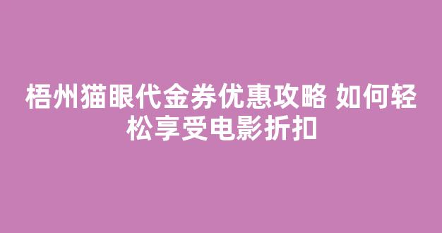 梧州猫眼代金券优惠攻略 如何轻松享受电影折扣
