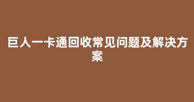通过本文的介绍,您应能清楚地了解巨人一卡通回收过程中可能遇到的常见问题以及相应的解决方案,帮助您顺利完成回收操作。