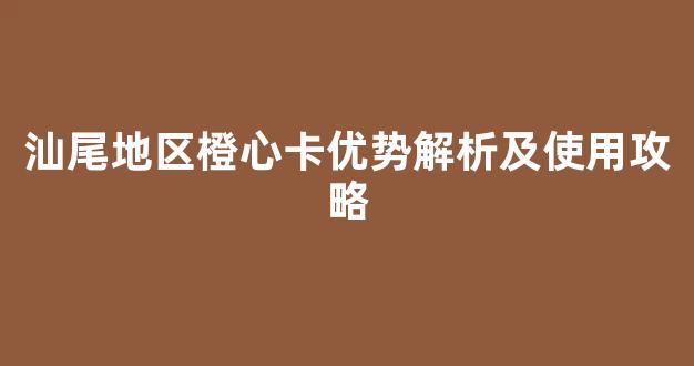 汕尾地区橙心卡优势解析及使用攻略