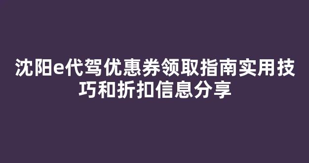 沈阳e代驾优惠券领取指南实用技巧和折扣信息分享