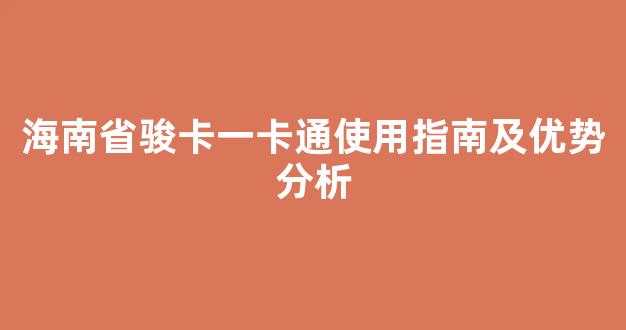 海南省骏卡一卡通使用指南及优势分析