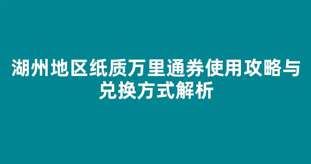 湖州地区纸质万里通券使用攻略与兑换方式解析