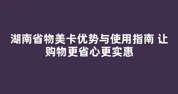 湖南省物美卡优势与使用指南 让购物更省心更实惠
