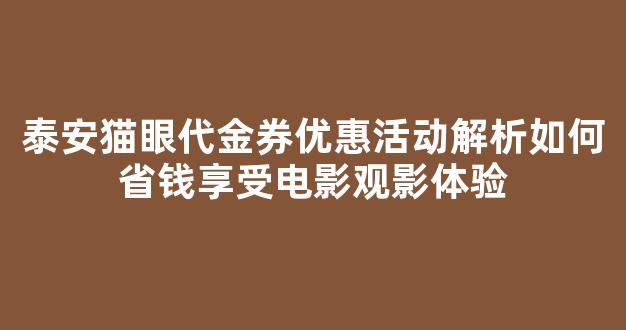 泰安猫眼代金券优惠活动解析如何省钱享受电影观影体验