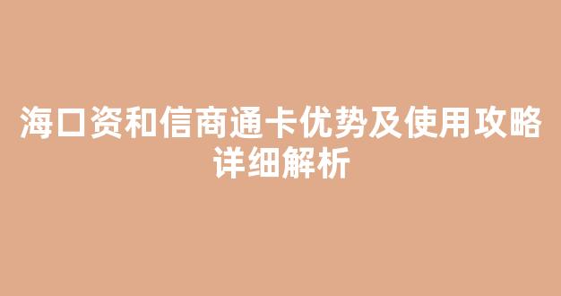 海口资和信商通卡优势及使用攻略详细解析