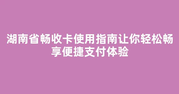 湖南省畅收卡使用指南让你轻松畅享便捷支付体验