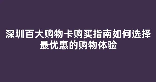 深圳百大购物卡购买指南:如何选择最优惠的购物体验