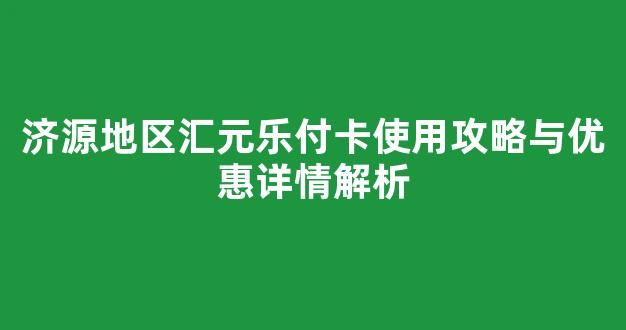济源地区汇元乐付卡使用攻略与优惠详情解析