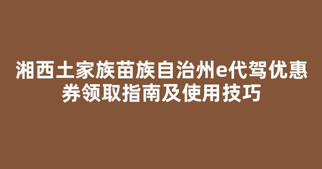 湘西土家族苗族自治州e代驾优惠券领取指南及使用技巧
