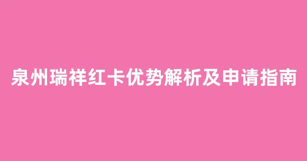泉州瑞祥红卡是一种在泉州市及周边地区广泛使用的金融卡片,它不仅提供了丰富的金融服务,还具备了很多独特的优势。许多用户在使用过程中都发现,这张卡带来了不少便捷和实惠。因此,了解泉州瑞祥红卡的优势以及申请过程对于想要拥有它的人来说非常重要。本文将详细解析泉州瑞祥红卡的优势,并为大家提供一个简单的申请指南,帮助你轻松申请到这张卡片。