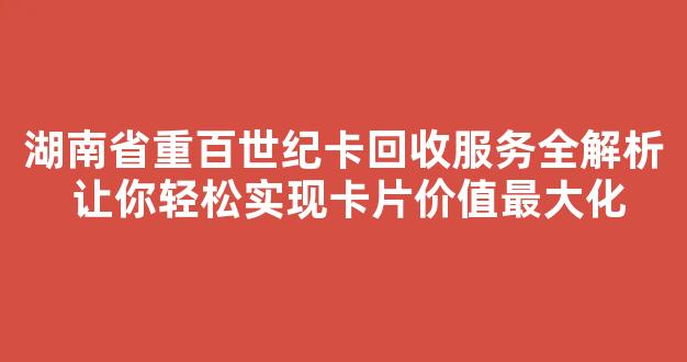 湖南省重百世纪卡回收服务全解析 让你轻松实现卡片价值最大化
