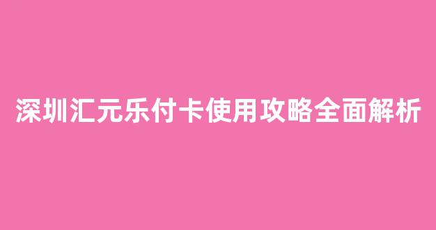 深圳汇元乐付卡是一种非常实用的支付卡,广泛应用于深圳地区的日常消费、购物、交通等场景。它不仅支持线上线下支付,还可以用于充值、消费积分等多种功能。本文将详细介绍深圳汇元乐付卡的使用方法,帮助大家更好地了解它的功能和使用技巧。
