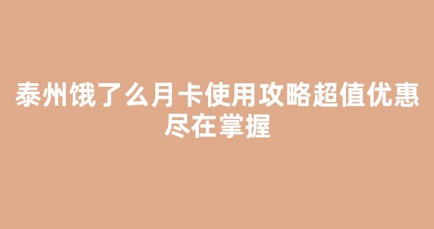 泰州饿了么月卡使用攻略超值优惠尽在掌握