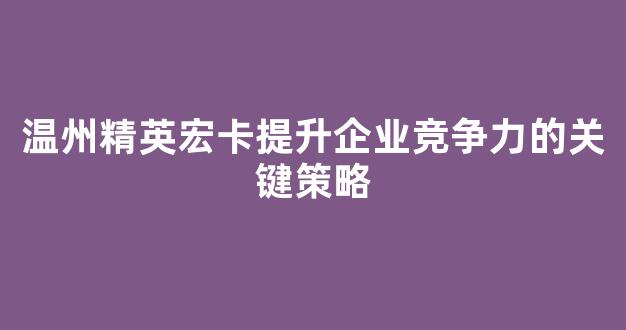温州精英宏卡提升企业竞争力的关键策略