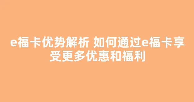 e福卡优势解析:如何通过e福卡享受更多优惠和福利