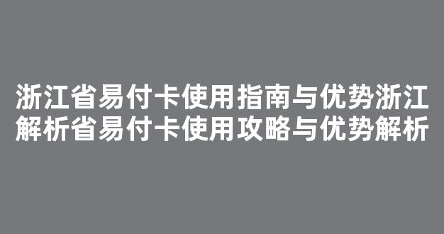 浙江省易付卡是由浙江省地方政府和相关金融机构联合推出的一种多功能支付卡。它可以用于日常购物、公共交通、医疗、教育等多个方面。通过这张卡,用户可以方便地进行线上和线下支付,还可以享受许多优惠和折扣。