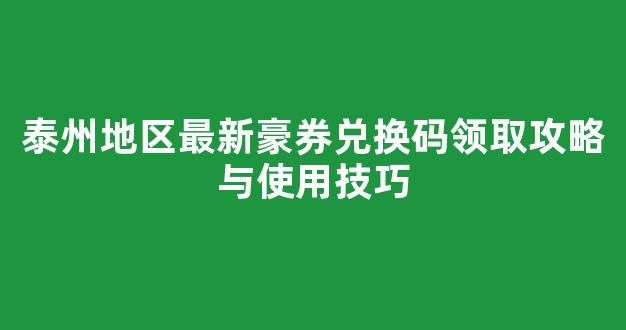 泰州地区最新豪券兑换码领取攻略与使用技巧