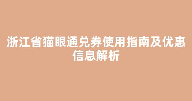 浙江省猫眼通兑券使用指南及优惠信息解析