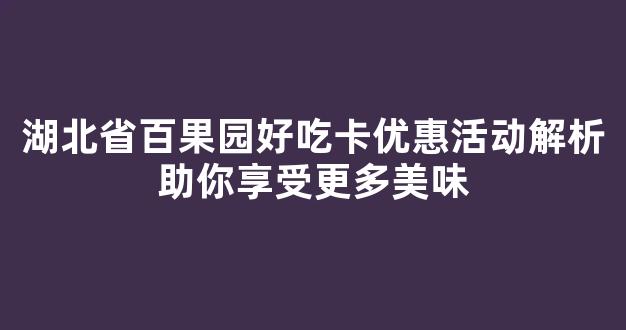 在日常生活中,水果已成为人们饮食中不可或缺的一部分。而百果园作为国内知名的水果品牌,以其丰富的水果品种和高品质的服务受到广大消费者的青睐。为了回馈广大顾客,湖北省百果园推出了“好吃卡”优惠活动,旨在让消费者通过这张卡享受更多美味和实惠。本文将详细介绍这一优惠活动的具体内容,帮助大家更好地理解和利用这个活动,享受更多美味的水果。