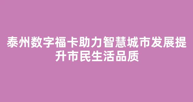泰州数字福卡助力智慧城市发展提升市民生活品质