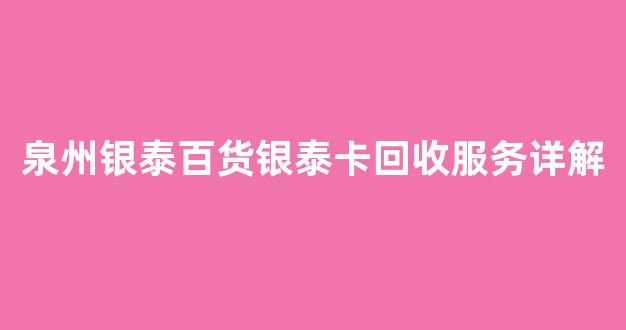 泉州银泰百货银泰卡是一种广受欢迎的购物卡,很多消费者选择购买并用来在泉州银泰百货内进行消费。但随着时间的推移,有些消费者可能会发现自己不再需要这张卡,或许因为搬家、换购物习惯等原因。此时,泉州银泰百货银泰卡的回收服务就显得尤为重要。本文将为大家详细介绍泉州银泰百货银泰卡回收的相关服务,帮助大家更好地了解回收流程、回收方式和回收平台的选择。